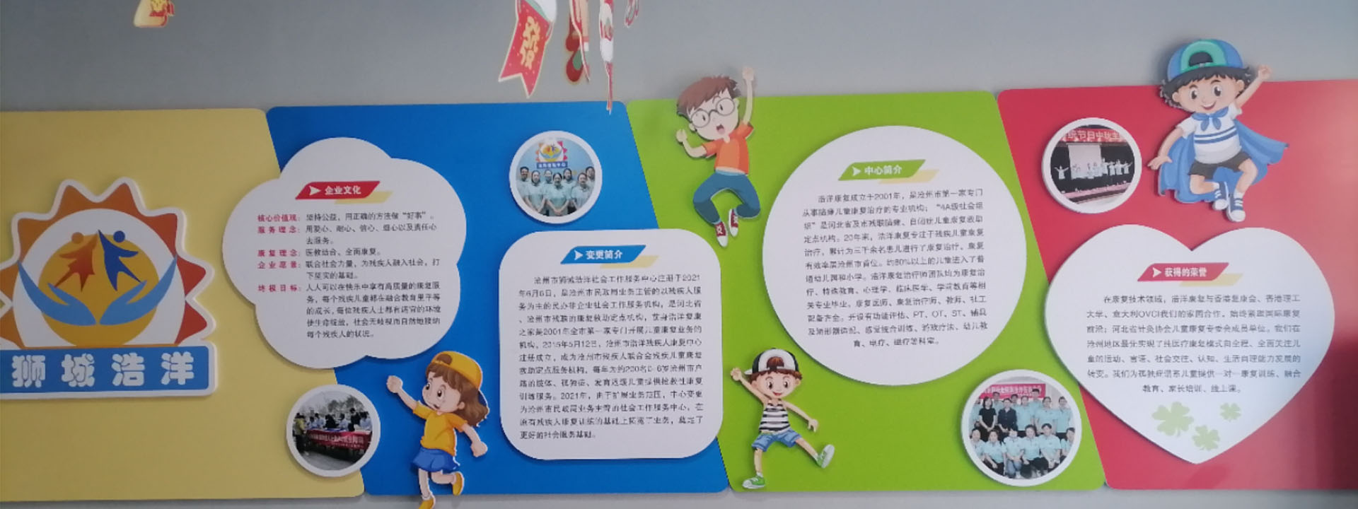 滄州市獅城浩洋社會工作服務中心注冊于2021年6月6日,是滄州市民政局業務主管的以殘疾人服務為主的民辦非企業社會工作服務機構。前身浩洋復康之家是2001年全市第一家專門開展腦癱康復業務的機構,2015年5月12日,滄州市浩洋殘疾人康復中心注冊成立,成為滄州市殘疾人聯合會殘疾兒童康復救助定點服務機構,每年為約200名0-6歲滄州市戶籍的肢體、孤獨癥、發育遲緩兒童提供搶救性康復訓練服務。2021年,由于殘聯不能再作為業務員主管單位,中心變更為滄州市民政局業務主管的社會工作服務中心,在原有殘疾人康復訓練的基礎上拓寬了業務,奠定了更好的社會服務基礎。